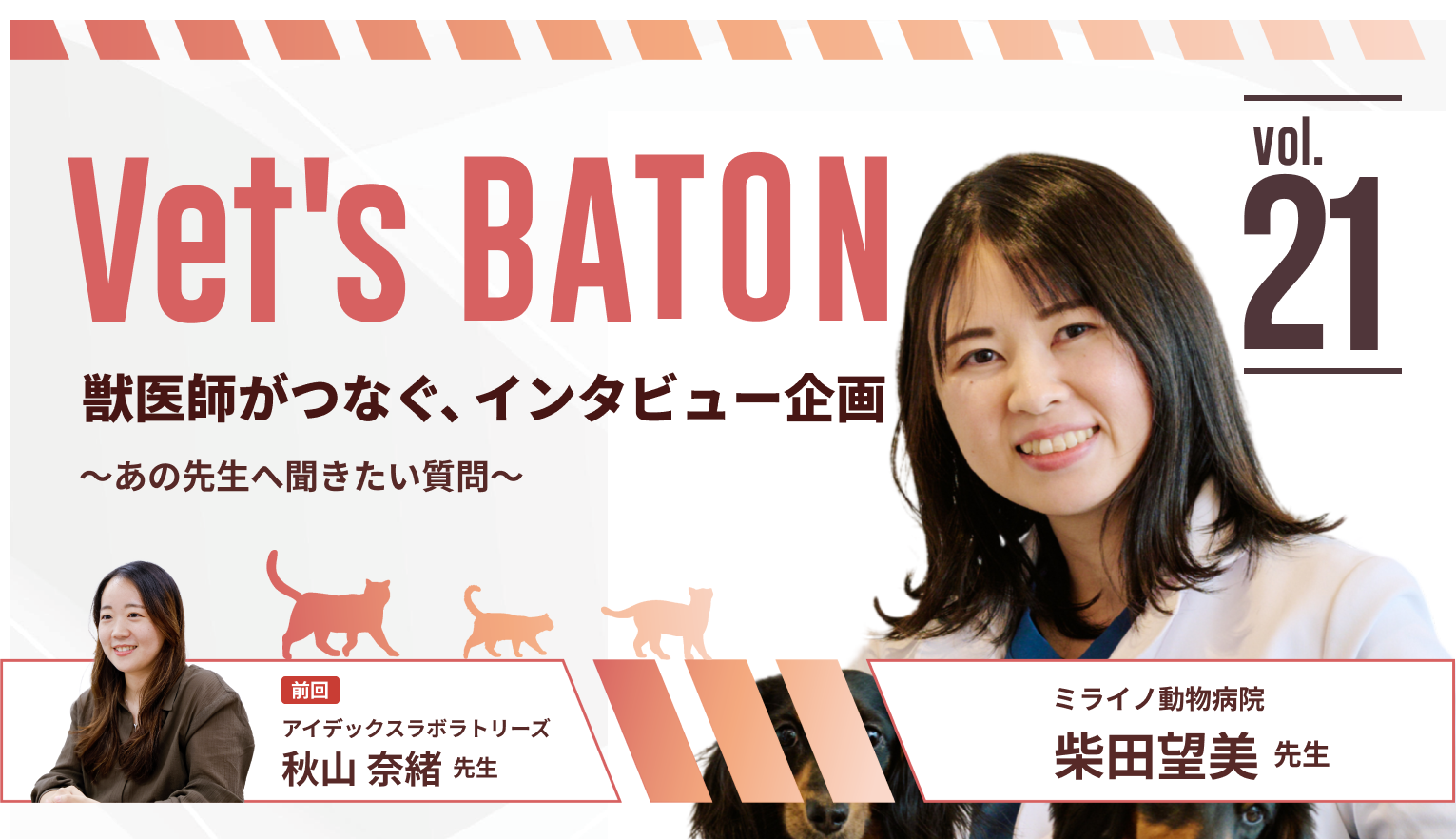 アイデックスラボラトリーズの臨床病理医、秋山奈緒先生からバトンをつないでいただいたのは、草加市谷塚上町にある「ミライノ動物病院」の柴田望美先生です。頼れる町の動物病院を目指し、わんちゃん猫ちゃんはもちろん、飼い主さんにも寄り添った診療を行っている柴田先生に、これまでの歩みや大切にされている想い、得意分野である歯のケアについてもお話を伺いました。