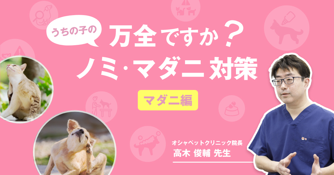 動物病院やペットの情報サイトなどで見かける「ノミ・マダニ対策」。「うちの子は室内飼いだから大丈夫」と思っている人も、油断は禁物!ノミやマダニは思いもかけない経路から侵入して、ペットの体や生活環境に潜んでいることもあるのです。そこでノミ・マダニの生態や、それらによって引き起こされる病気、そして対策法について、オシャペットクリニック院長の高木俊輔先生にお聞きしました。今回は【マダニ対策】について詳しく解説します。