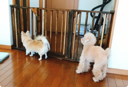 普段からご自宅で仕事をされているという飼い主さんは、ご主人の在宅勤務がはじまって「犬がうるさくなった」と言います。「主人は普段家にいないので、トイレに行くだけでも犬たちは大騒ぎです。いつも柵の前に立って、帰ってくるかな?と見張っているんです」。でも、こんなに愛されているなんてご主人がうらやましいです…。